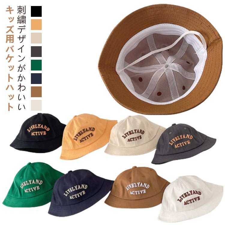 刺繍 帽子 バケットハット ゴム コットン 夏 ハット 折りたたみ 飛ばない キッズ おしゃれ アウトドア 子供 つば付き ベビー uvカット 赤ちゃん 女の子 あご紐 あごひも 男の子 綿