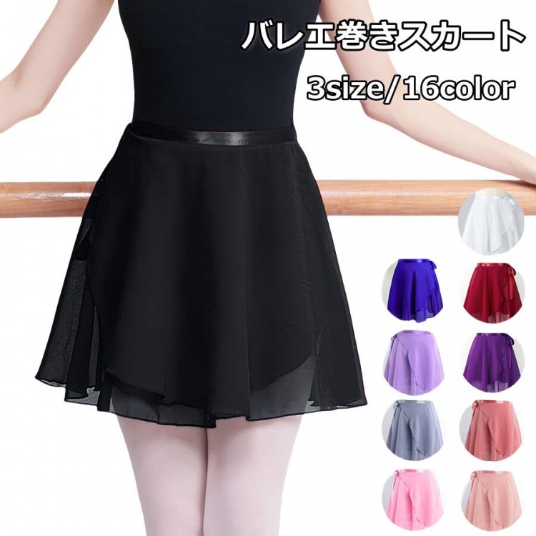 キッズサイズ~大人サイズ/全16色 バレエ用品 シフォン バレエ スカート 巻きスカート シフォンスカート バレエスカート