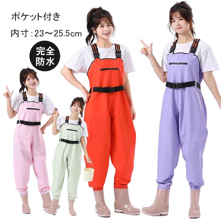 レディース用レインブーツ ウェーダー チェストハイ お釣り 潮干狩り 水遊び 胴付長靴 防水 滑り止め 田んぼ 水場仕事 漁業 アウトドア 渓流 水産 オールインワン