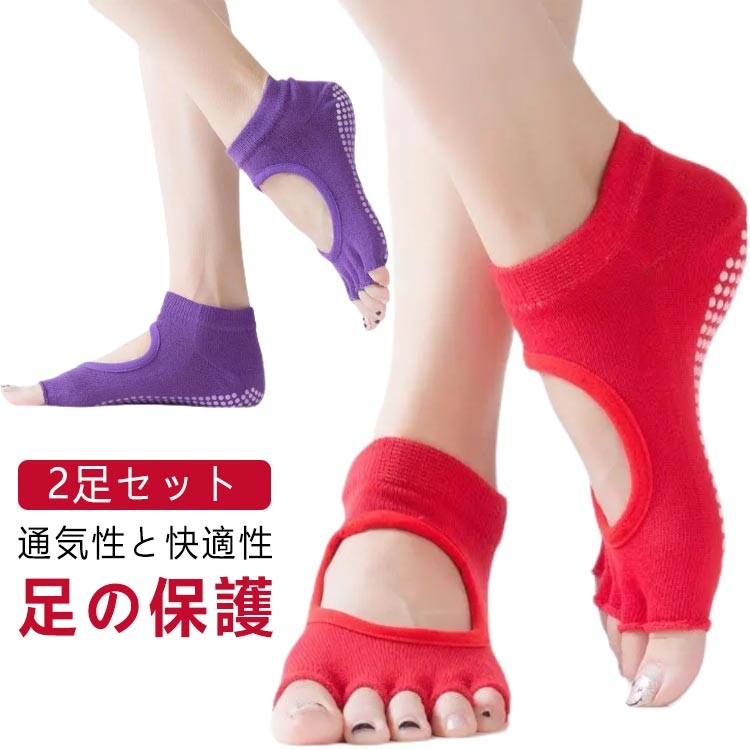 2足セット ヨガソックス 5本指ソックス 滑り止め レディース 靴下 インナーソックス 5本指 スポーツソックス つま先なし フリーサイズ ヨガ おしゃれ くつした ヨガ用靴下 指なし