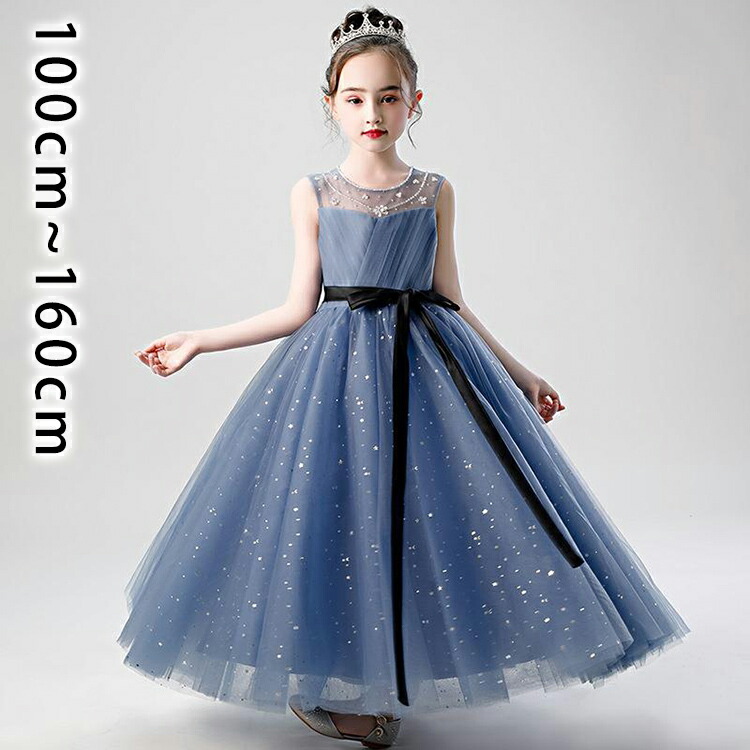 子供 ドレス キラキラ ブルー ピアノ発表会 中学生 140 150 子ども 結婚式こども 発表会 ドレスワンピース ロング丈 ピアノ