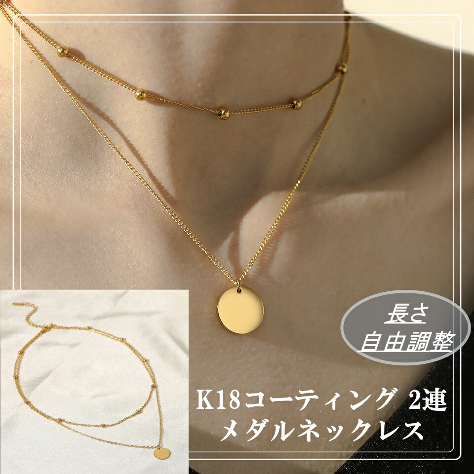 K18コーティング2連ロングネックレスジュエリー アクセサリー レディースジュエリー ネックレス ペンダント