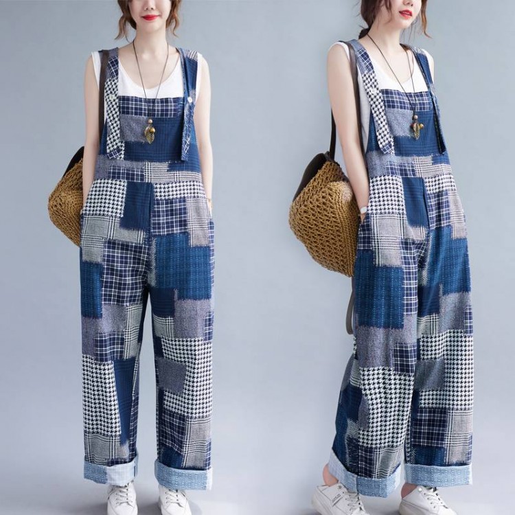 オーバーオール サロペット レディース パンツ オールインワン 個性的 ロング丈 パッチワーク ブルー デニム 春 夏 ポケット ゆったり メンズライク おしゃれ 可愛い ボーイッシュ 主