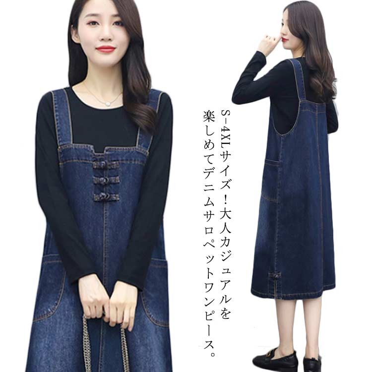 S 3XLサイズ デニムワンピース サロペット ジャンパースカート ロングスカート レディース オーバーオール デニムサロペット サロペットワンピース 大きサイズ ロング ジャンスカ 春