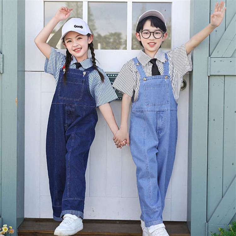 100cm-180cm 単品 ダンス衣装 オーバーオール カジュアル デニム サロペット シャツ ジュニア 子供服 無地 女の子 男の子 幼稚園 小学生 中学生 おしゃれ 服 子供 ガールズ