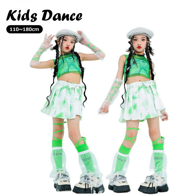 キッズ ダンス衣装 緑 セットアップ イベント かっこいい 女の子 韓国 韓国風 ヒップホップ HIPHOP K-POP ジャズ ストリート ダンス ダンスウェア 練習着 応援 団体服 発表会 演出服