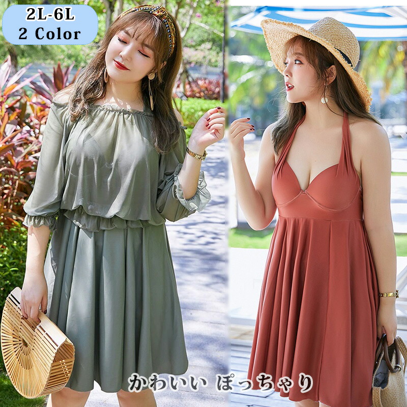当店人気 オフショルダー 服みたいな水着 大きいサイズ レディース 体型カバー カバーアップ セクシー 女性