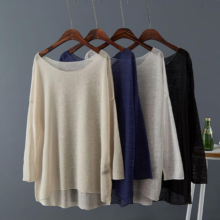 シアーニット シアートップス レディース チュニック 長袖 シースルー セーター 透け感 プルオーバー ライトニット 薄手 春夏 秋 レイヤード 透け 丸首 無地 大きいサイズ カットソー