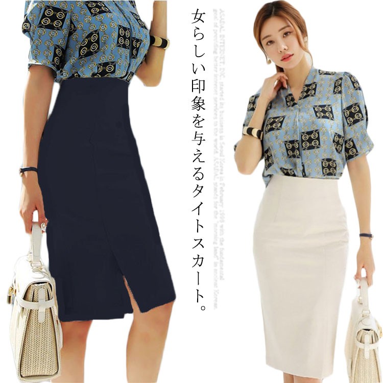 スーツスカート タイトスカート ハイウエスト 膝丈 フォーマルスカート ペンシルスカート ヒップアップ ストレッチ