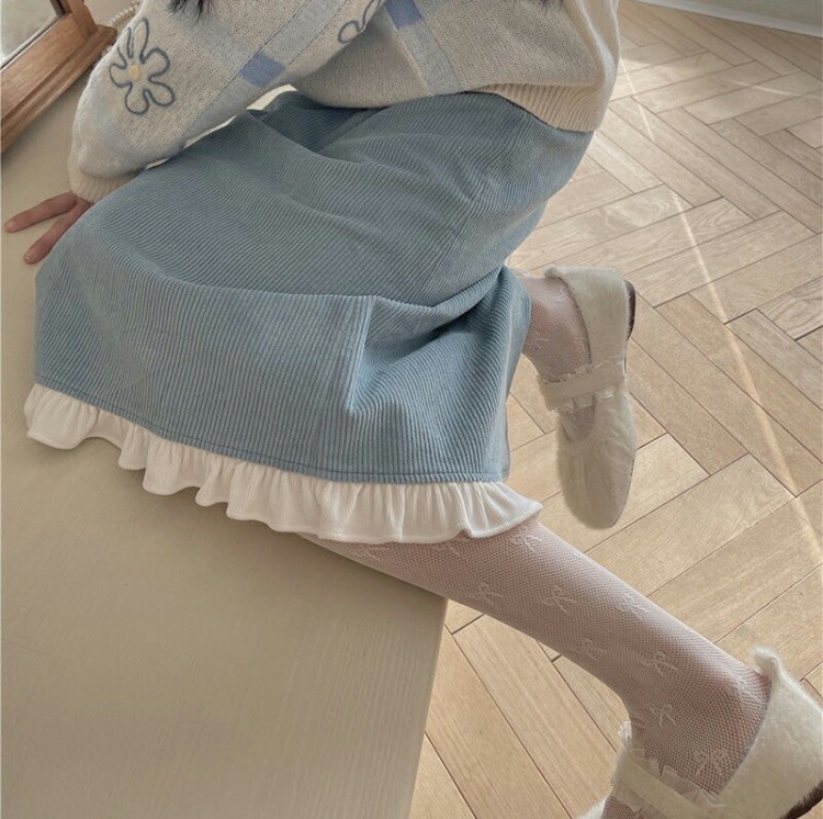 スカート ロングスカート コーデュロイ レディースファッション ボトムス きれいめ 体型カバー 洗える 軽量 着痩せ 伸縮 柔軟 ブルー 春 夏 仕事 S M L 通勤
