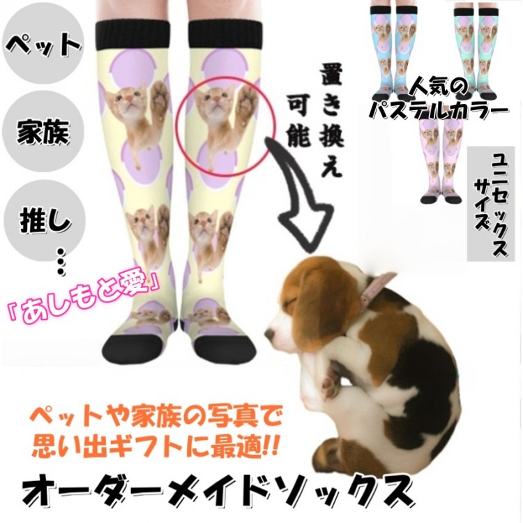 受注生産 ロングソックス オーダーメイド 靴下 ハイソックス 男女兼用 名入れ 写真入り ペット 犬 猫 家族 子供 誕生日プレゼント