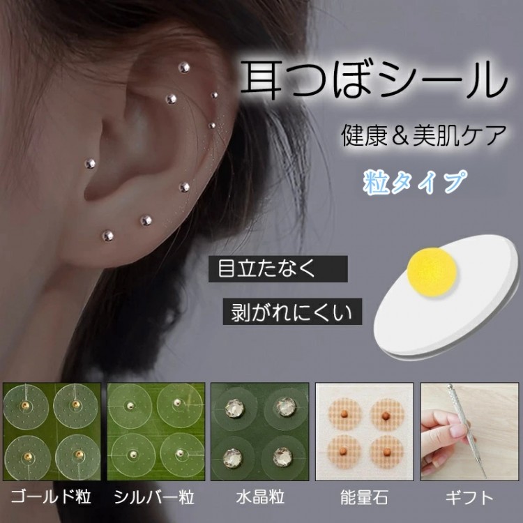 耳ツボ ジュエリー 耳つぼシール 美顔 金属アレルギー対応 ステンレス製 空気孔シール お得1000粒 粒タイプ 耳つぼジュエリー 金粒 健康グッズ 美肌 銀粒 コリほぐし