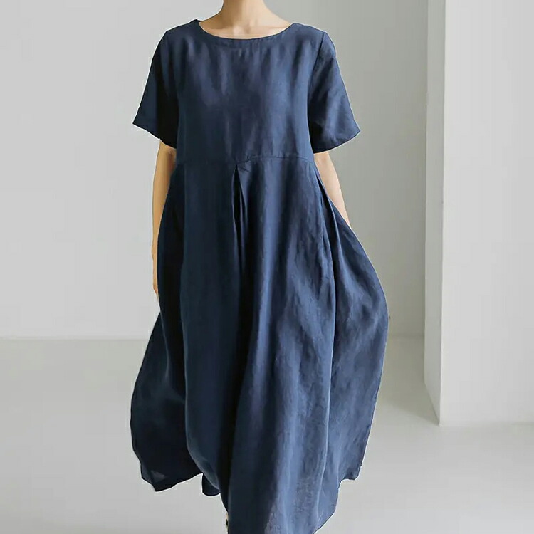 ワンピース 夏ワンピ ロング丈 半袖 丸首 ゆったり 大きいサイズ 体型カバー カジュアル シンプル 着痩せ 涼しい 通気性 トレンド 無地 ファッション 夏コーデ お出かけ デイリー ルームウ 旅行
