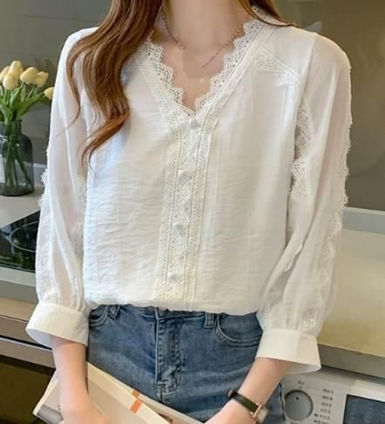 大人可愛い カジュアル 無地 Vネック フェミニン キュート 高級感 40代 ストレート シャツ 30代 旅行 お出かけ 海 デート プルオーバー シンプル 上品 きれいめ レース 刺繍 イベ 20代
