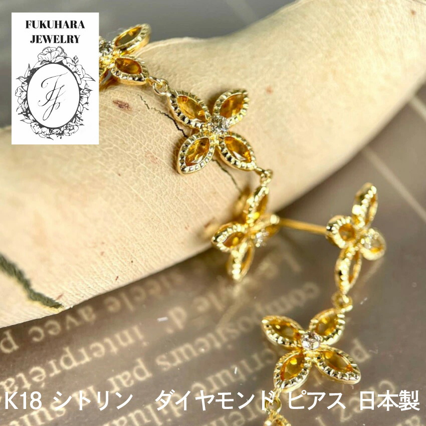 【貴重】天然石 シトリン K18 ダイヤモンド ピアス 【品質保証書付】シトリン 人気 おしゃれ オフィス フォーマル レディース ギフト 母の日 誕 プレゼント