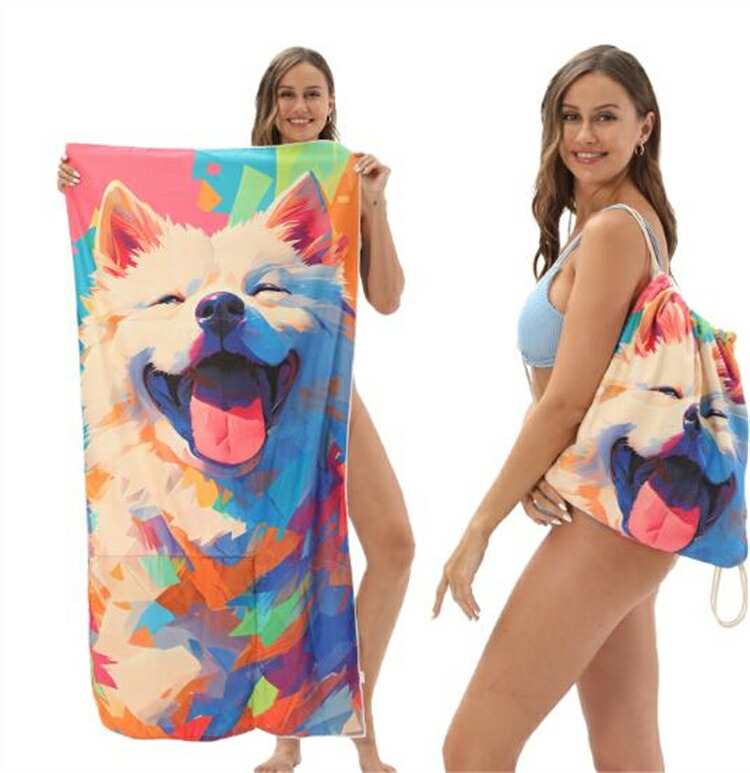 ビーチマット 2in1 折りたたみ ビーチタオル プリント ビーチタオルバッグコンボ バスタオル 一体型 ビーチシート 収納 旅行 ビーチブランケット 多機能 ポーチ付き