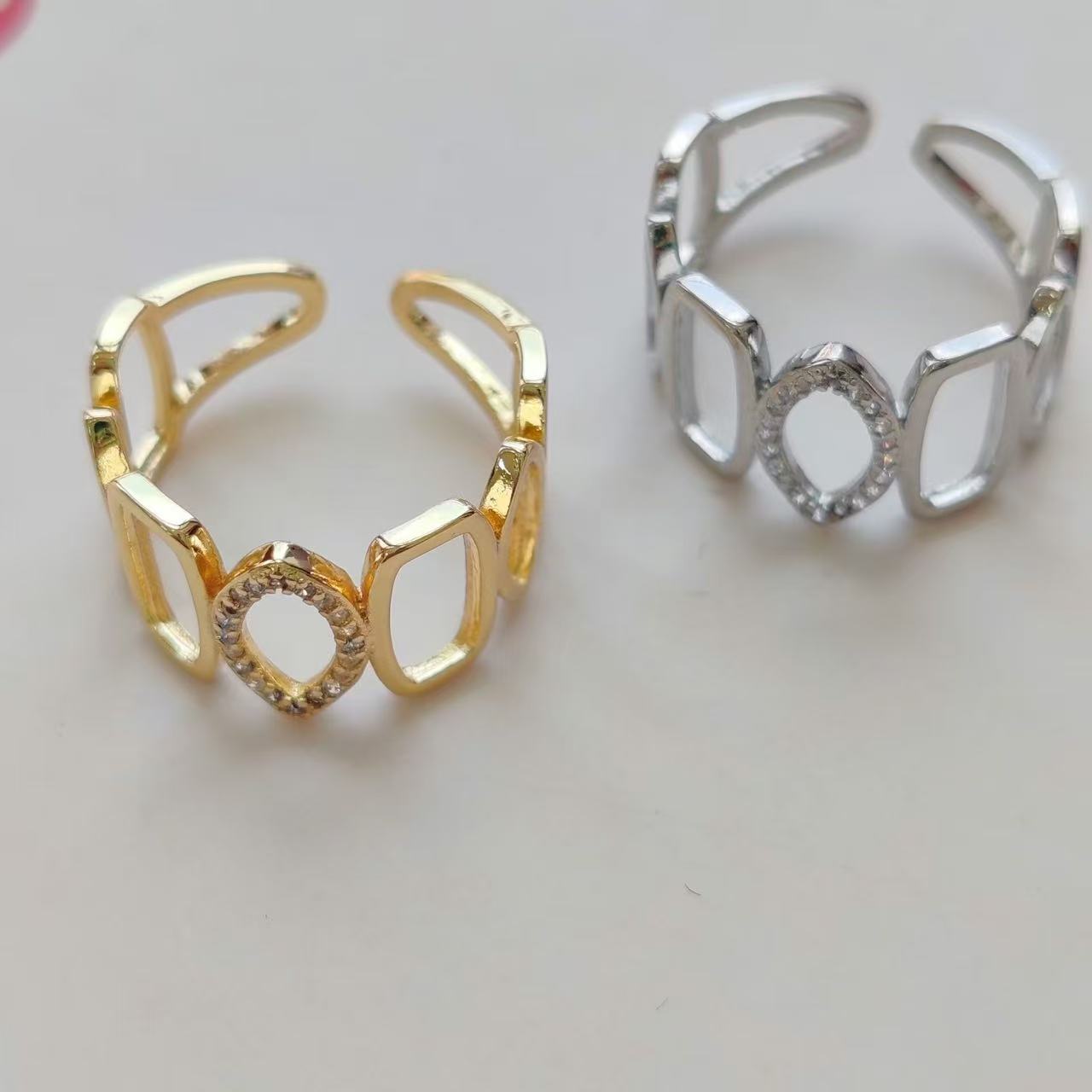 オールシルバー925シルバー幅広ダイヤモンドオープンリングジュエリー アクセサリー レディースジュエリー 指輪 リング