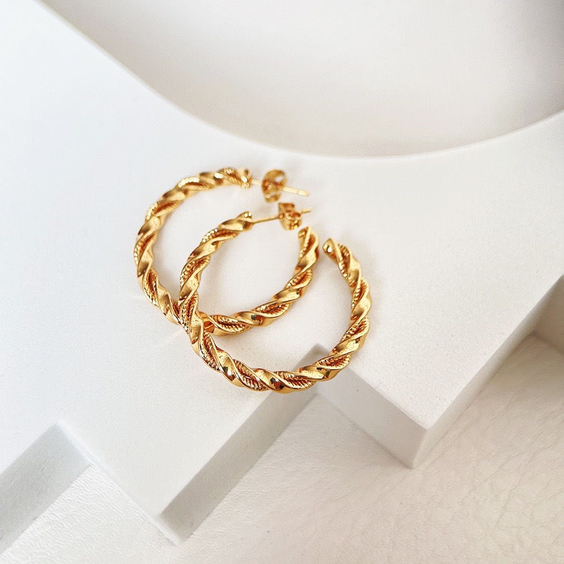 ピアス 18コーティング ロープ 螺旋状 おしゃれ かわいい 大人 シンプル 存在感 高級感 デイリー フォーマル カジュアル オフィス デート 誕生日 プレゼント コスパ ギフト