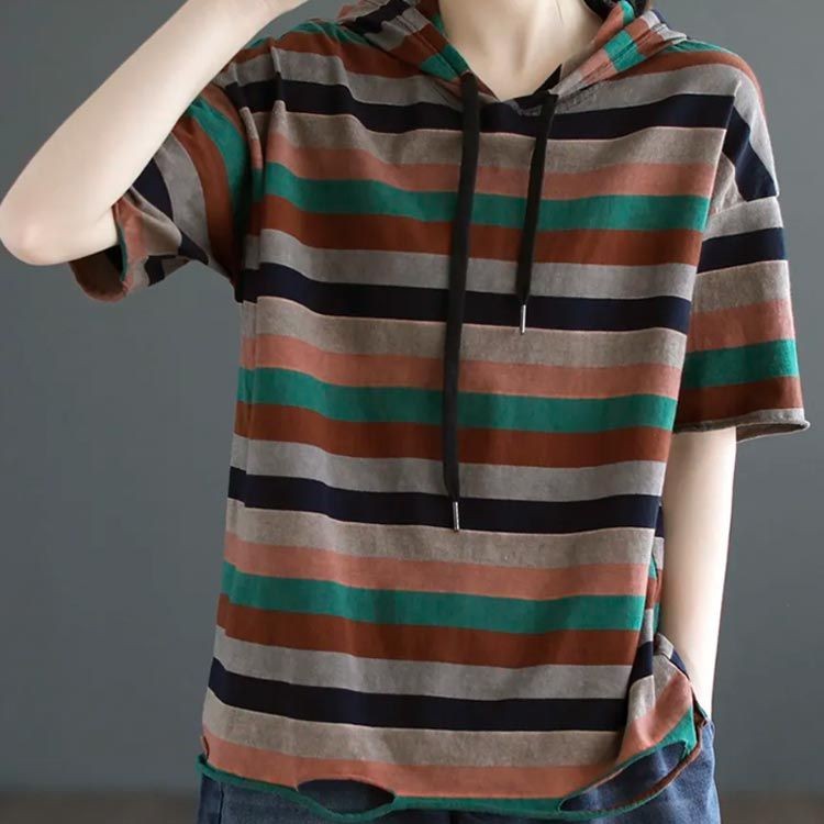 フード付きtシャツ tシャツ 綿 半袖パーカー 大きいサイズ パーカー フード プルパーカー フーディー カジュアル レディース コットン 薄手 夏 パーカーtシャツ ボーダー柄tシャツ 春