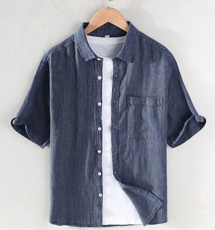 開襟 新品 普段着 薄地 メンズシャツ シャツ -3 リネンシャ